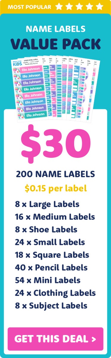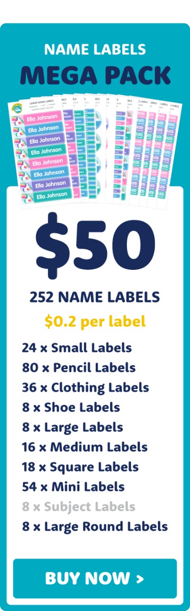 Keep your kid's stuff safe from being lost or stolen in class with our waterproof school name labels. Choose from our three most popular school name label value kits above. When you use these, you'll understand why they're the school labels parents trust.