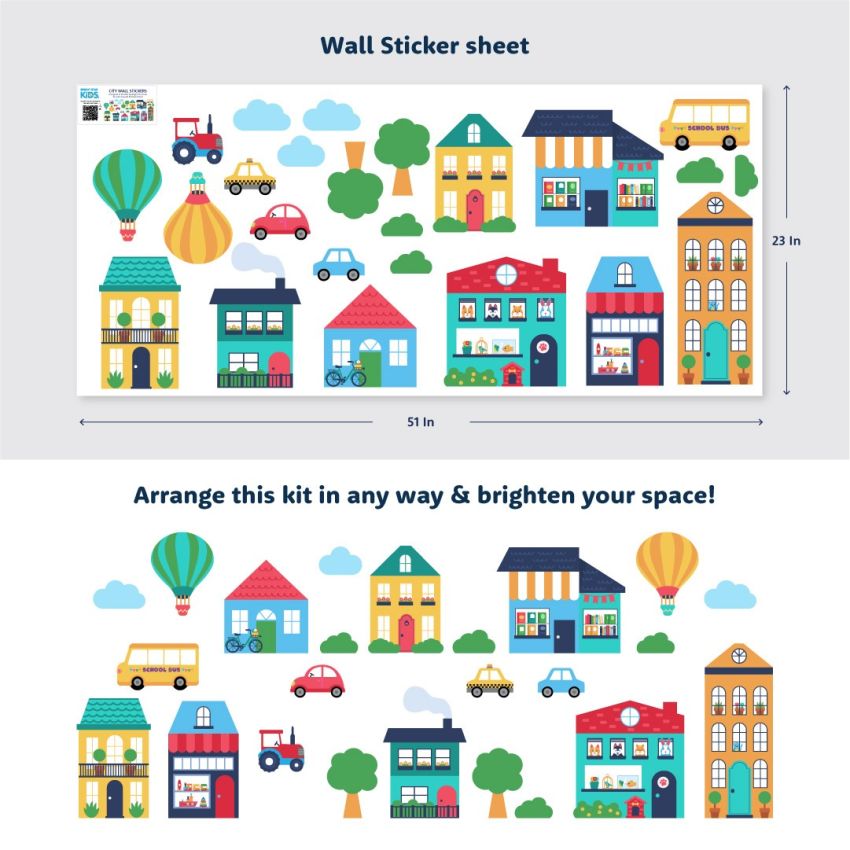 The white vinyl backing keeps every color crisp and vivid. Since they’re removable and repositionable, you can move or reuse them anytime. Perfect for renters, families, or anyone who loves a quick and easy room update. Pair them with our Removable Wall Letters to personalize your child’s little town.